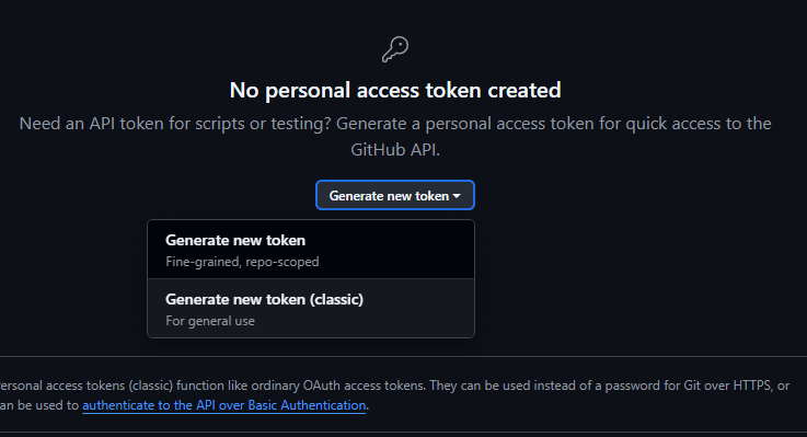 4. 「Generate new token」>「Generate new token(classic)」の順にクリックする。