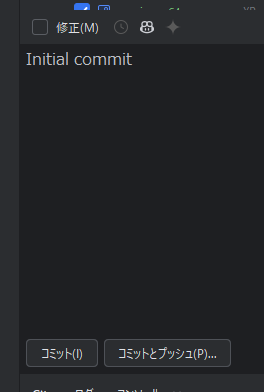 コメントを記載し、「コミットとプッシュ」をクリックする。