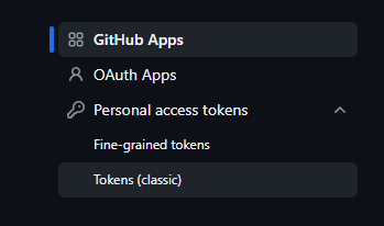 3. 「Personal access tokens」>「Tokens(classc)」の順にクリックする。