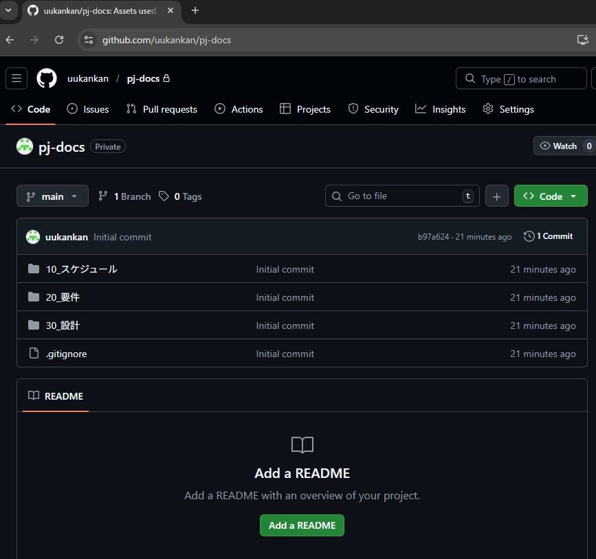 branch 'main' set up to track 'origin/main'.11. GitHubにプッシュされているか確認する。